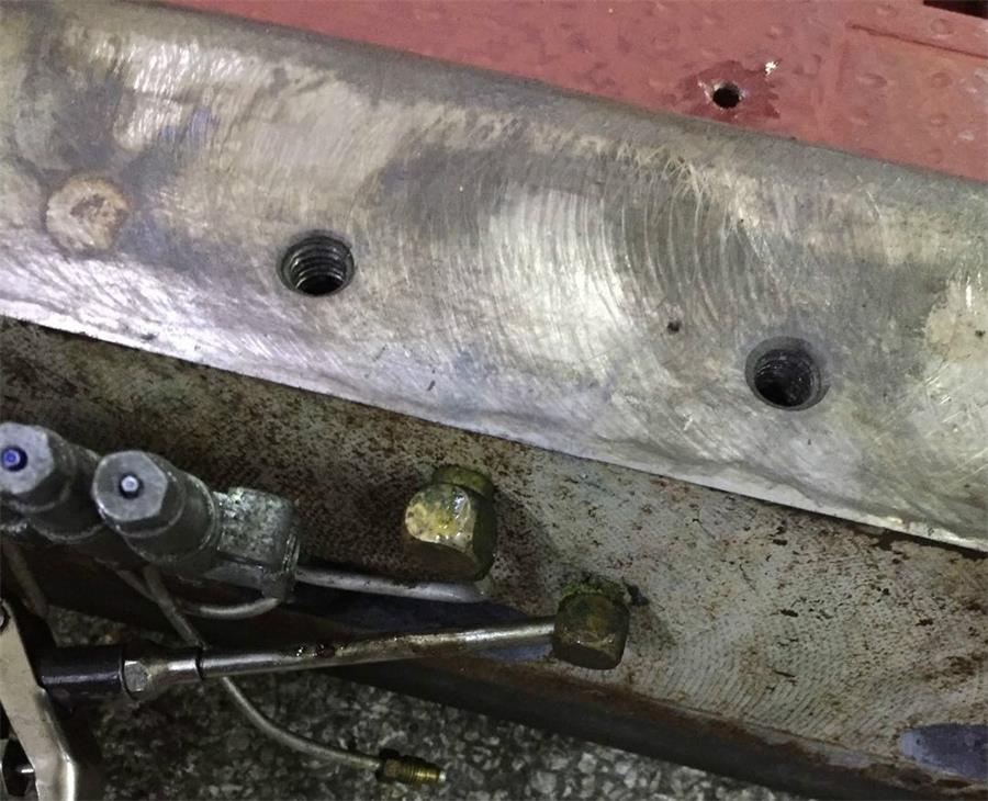 1、工作臺(tái)刮渣片全部拆掉,工作臺(tái)耐磨皮安裝面用氣槍吹干凈,汽油清洗干凈,均勻的涂上紅丹油。導(dǎo)軌面用汽油清洗干凈。