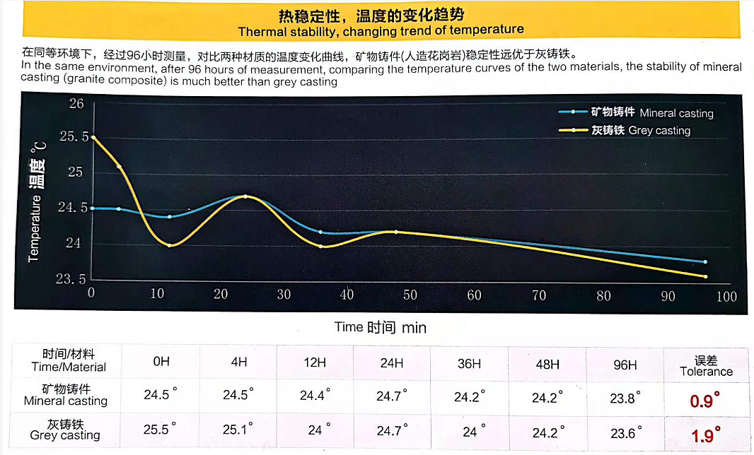 一、GBC-650床身采用精選大理石構(gòu)造,具有高精度、高剛性、低熱傳導(dǎo)、低收縮率特性,吸振性能超越鑄鐵床身10倍,溫度敏感性僅為鑄鐵的1/25,可有效保證加工穩(wěn)定性。